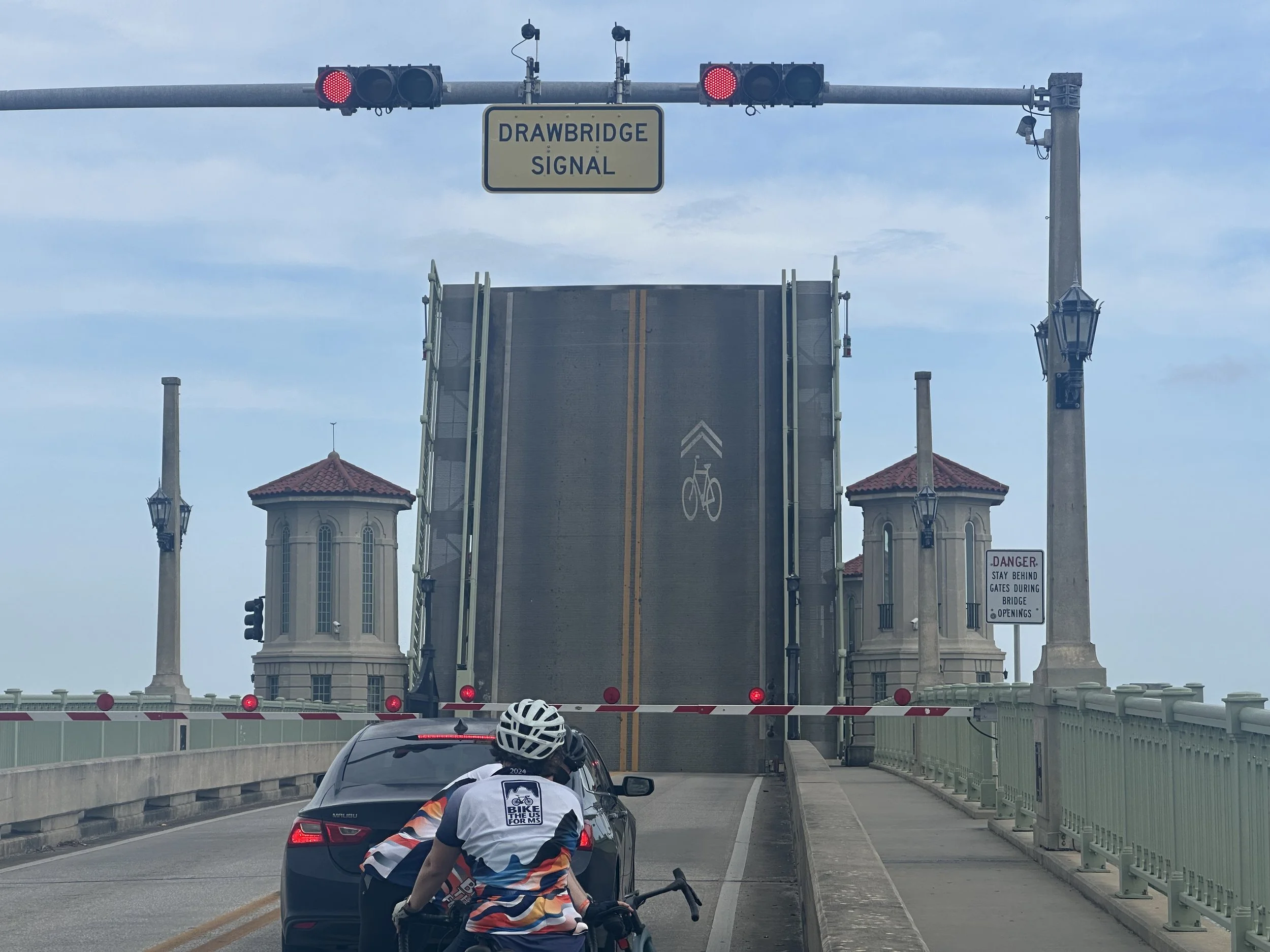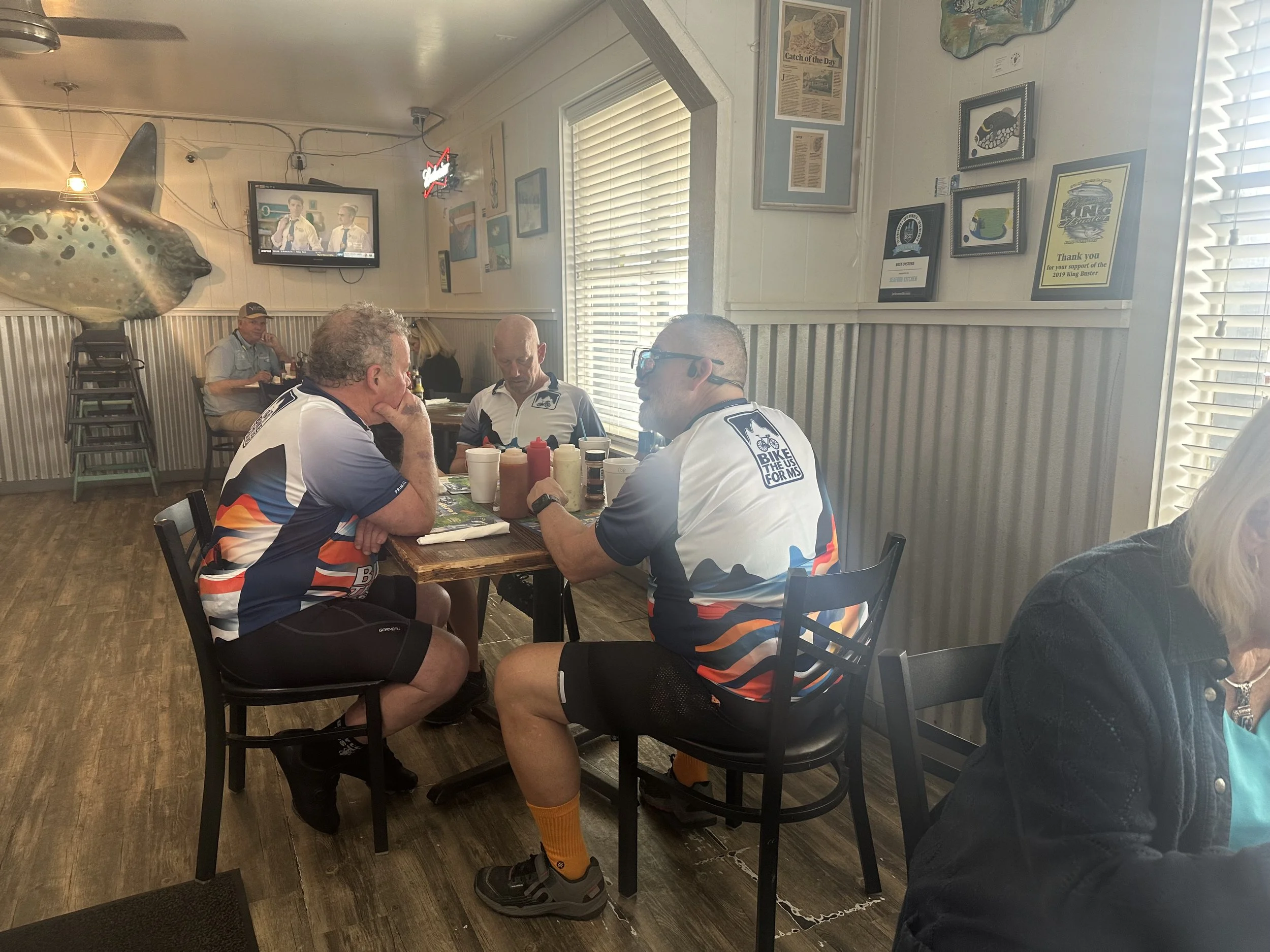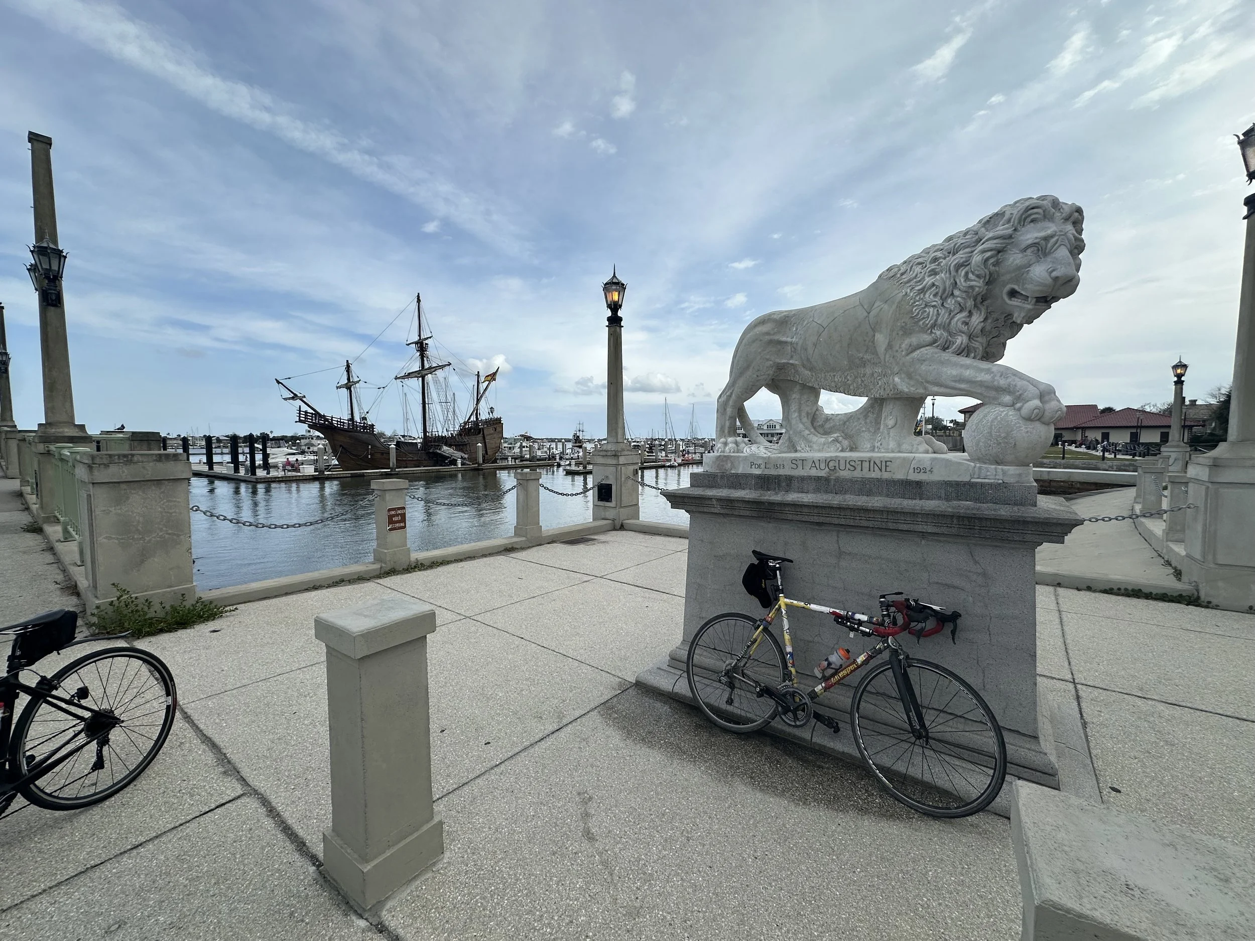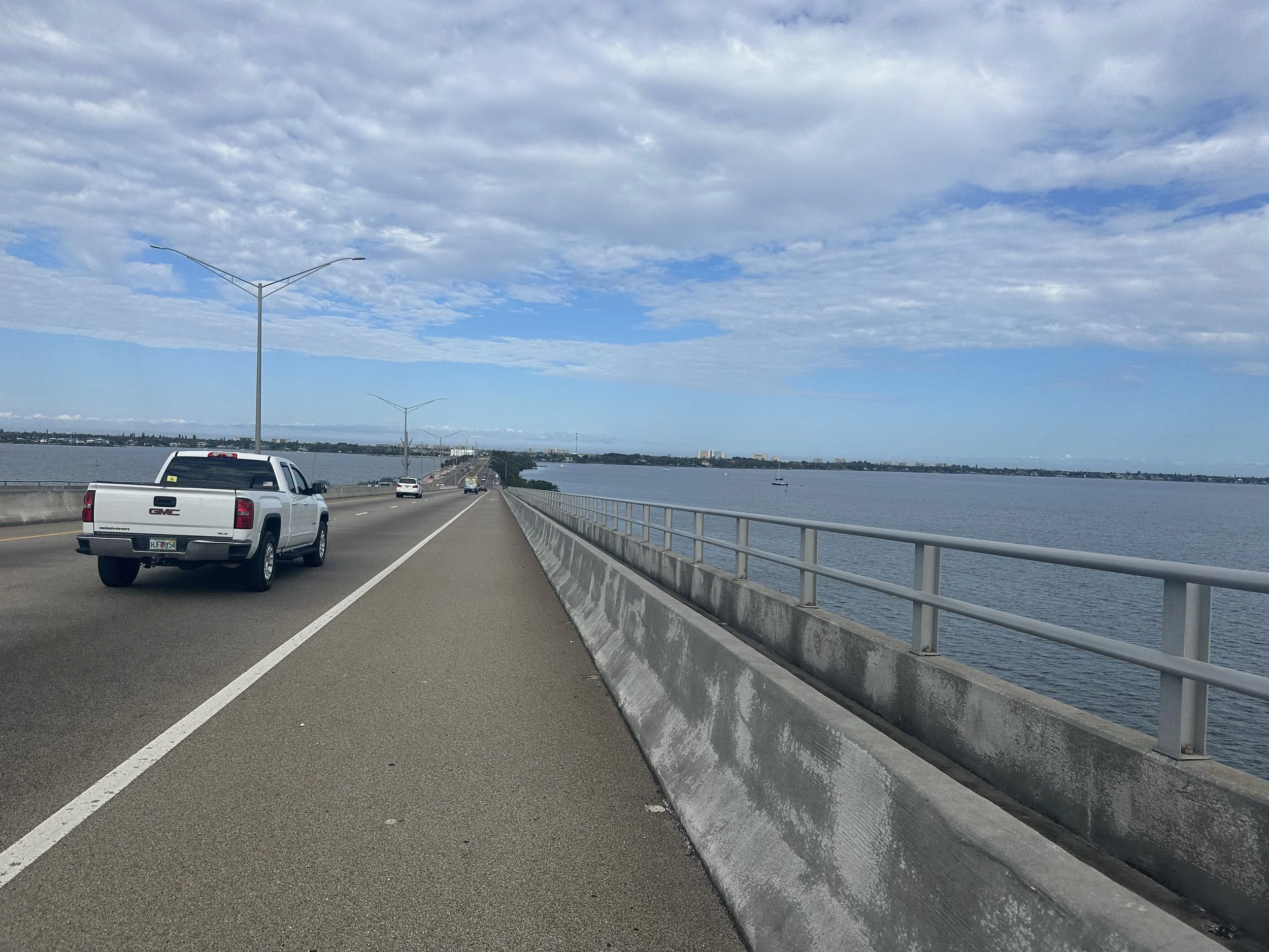 Another great day of cycling. I was on the struggle bus today; everything is starting to hurt, whether that’s because I’m 46 now or just out of shape; feet are swelling, lungs are tired. Back feels good though. We rode through the wealth areas of Palm Beach, but it rained almost all day, at times quite hard, so we really didn’t see much, and what we did see was hard to take a picture of. We actually rode right past Mar-A-Lago; you could tell because there were several camerapersons stationed on the bike path with their cameras pointing at it, to get B-roll, or in case the place exploded or something. You also could tell because there were several Secret Service stands set up to oversee the property; interestingly, they are quite clearly labeled with no attempt to hide them. I would have taken pictures but, again, it was raining pretty hard, which I’m going to choose to see as a good omen.